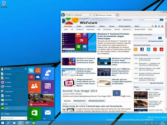 | Windows 9 Start Menu with Start Screen Leak Screenshot |