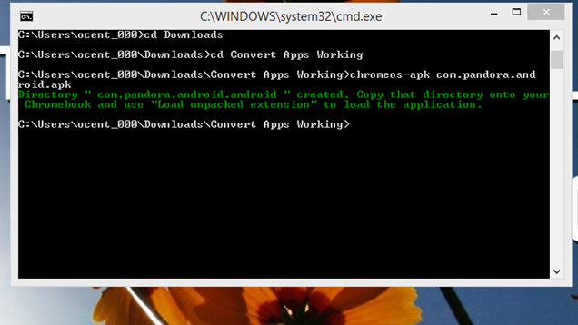 That’s it. You now have the chromeos–apk tool installed on your machine and can call it from any folder in the command line. You can skip ahead to the section below on how to use it.