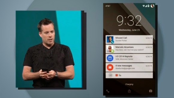 The notification panel is being merged with the lockscreen so you can see what’s going on as you pick up the phone, and a simple swipe up takes you into the phone. Notifications on Android “L” Lollipop are getting an overhaul, so only the more relevant information about your apps is being presented. Another big change is that notifications will flow over the screen at the top, get a call when you’re playing a game and it will pop up at the top, asking if you want to take it. Android “L” Lollipop will also learn from you, working out what you look at and interact with more often to prioritize that notification. The lockscreen is getting smarter too, if you’ve got a specific location set up, or are wearing a Bluetooth device, the phone will recognize you and unlock without a PIN. Imagine that the lockscreen is similar to the notification panel now, and you’re pretty much there. Move away or take your watch off and you’ll need to tap or swipe in a code when you unlock, or you can even use your voice.