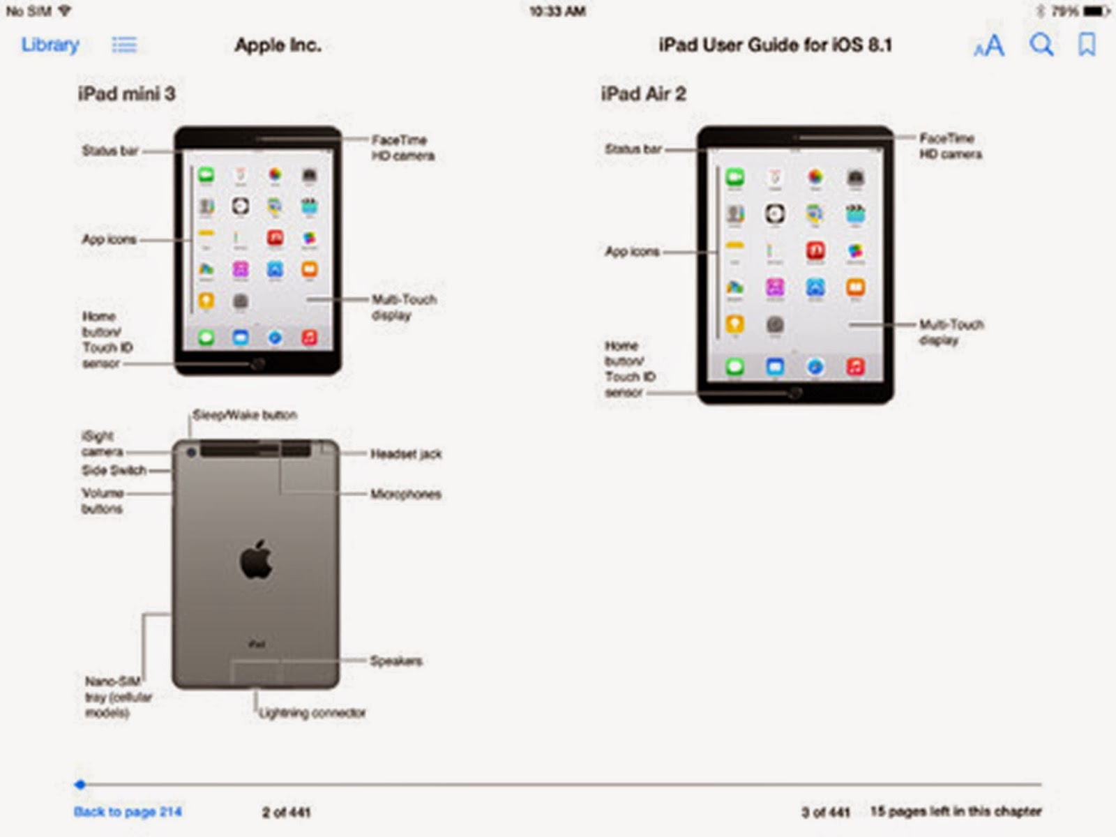 Apple has apparently revealed images of new iPads online a day ahead of their intended release. The iPad Air 2 and iPad Mini 3 are shown in the iPad User Guide for iOS 8 iBook on the iTunes store, with screenshots revealing that both will have Touch ID fingerprint sensors.