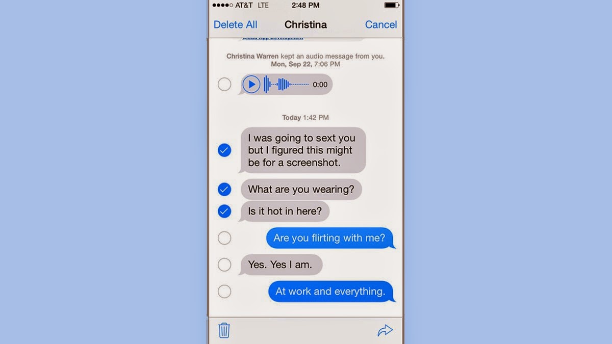 By highlighting a text message, an option for More will pop up from there, you’ll be able to forward it along to someone else or tap to erase individual messages. There’s a lot more you can do with the texts you send and receive with iOS 8, including deleting them one by one.